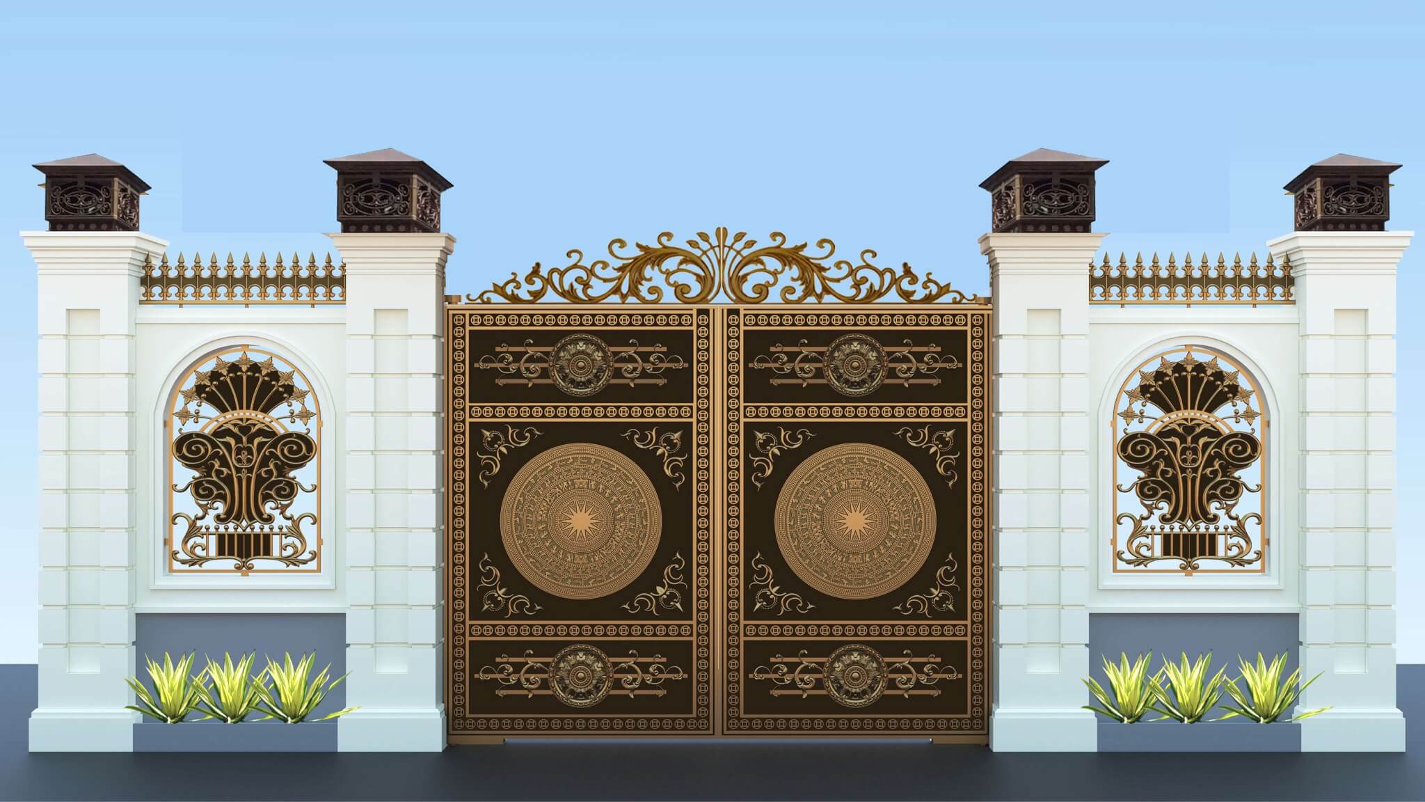 Bởi thế, yếu tố đầu tiên mà chúng ta cần lưu tâm chính là thiết kế không gian chung của khu vực cổng thông thoáng, không nên bưng bít tạo cảm giác khó chịu, vừa không đảm bảo tính thẩm mỹ lại không tốt cho phong thuỷ. Nhà có sân rộng nên lưu ý phương vị mở cổng tương ứng với cách chọn vị trí, phương hướng của cửa chính. Riêng phần bát trạch, chúng ta nên thuận theo cung mệnh.